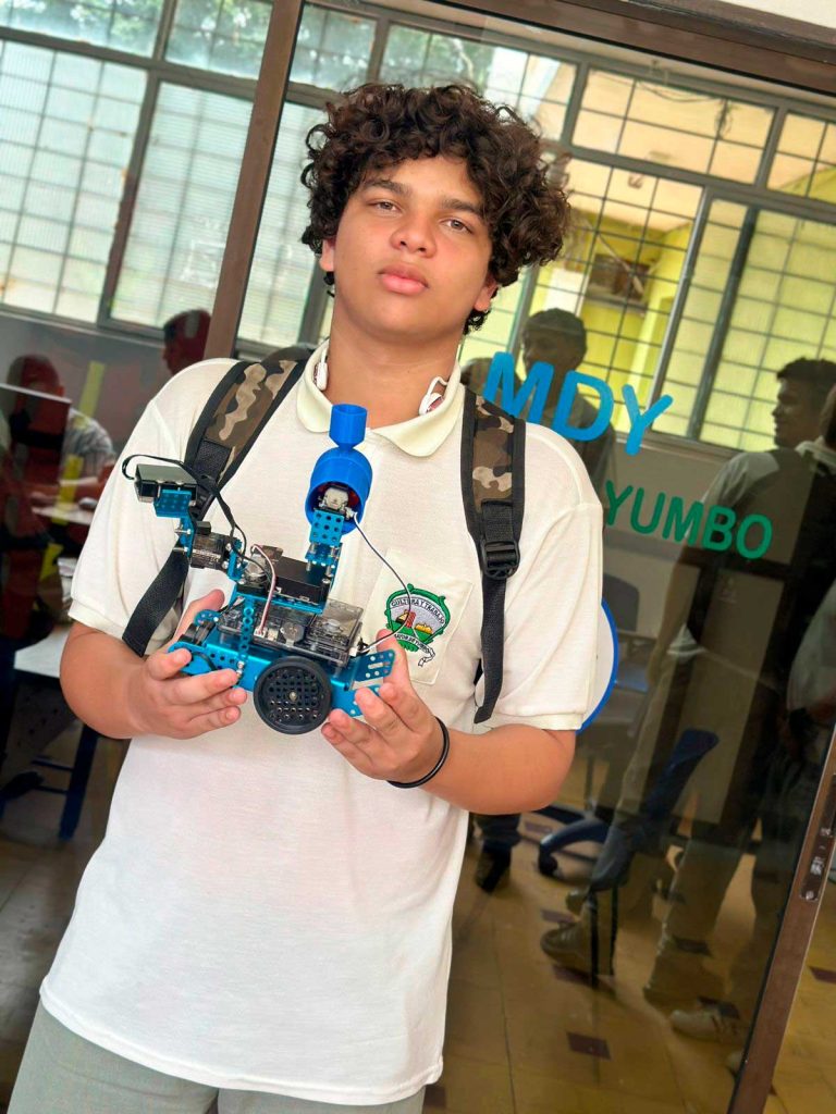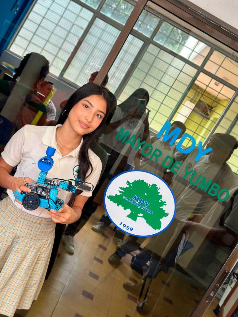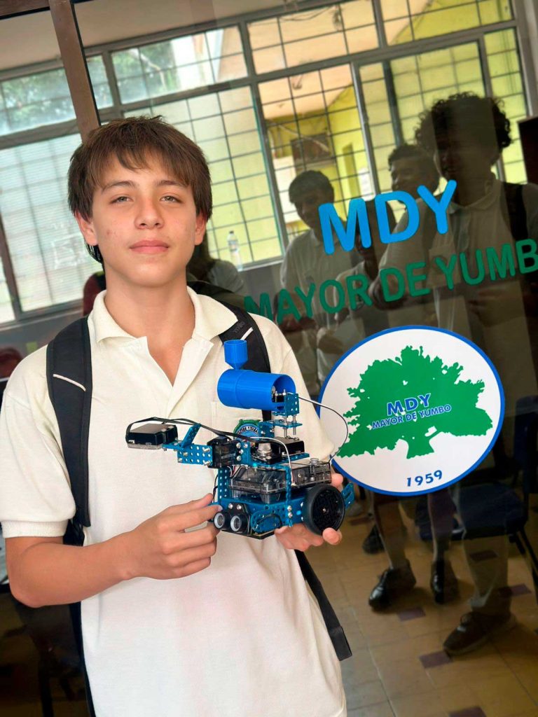 Nuestra Institución Educativa Mayor de Yumbo se viste de gala para celebrar un logro histórico alcanzado por el ingenio y la disciplina de nuestros estudiantes. El grupo de robótica Bee Big Coders ha dejado el nombre de nuestra institución en lo más alto tras su brillante participación en las Olimpiadas STEM+ 2025, donde alcanzaron un meritorio tercer puesto gracias a su innovador proyecto: el Polinizador Terrestre Autónomo. Este prototipo, diseñado y programado íntegramente en nuestras aulas, no solo demuestra el alto nivel técnico en robótica de nuestros jóvenes, sino también su profunda sensibilidad ambiental. El robot de los Bee Big Coders busca proteger la vida y la biodiversidad a través de la tecnología, demostrando que en nuestro «Territorio de Paz» la ciencia se pone al servicio de la naturaleza y la sostenibilidad. Este triunfo es el resultado del esfuerzo conjunto entre estudiantes apasionados, docentes orientadores y familias comprometidas que creen en el poder de la educación para transformar realidades. Felicitamos a cada integrante de este equipo por su tenacidad y por demostrar que el Mayor de Yumbo es un semillero de líderes capaces de competir y destacar en las grandes ligas de la innovación tecnológica nacional. ¡Ustedes son el orgullo de nuestra comunidad y el ejemplo de que el futuro se construye hoy con talento y responsabilidad!